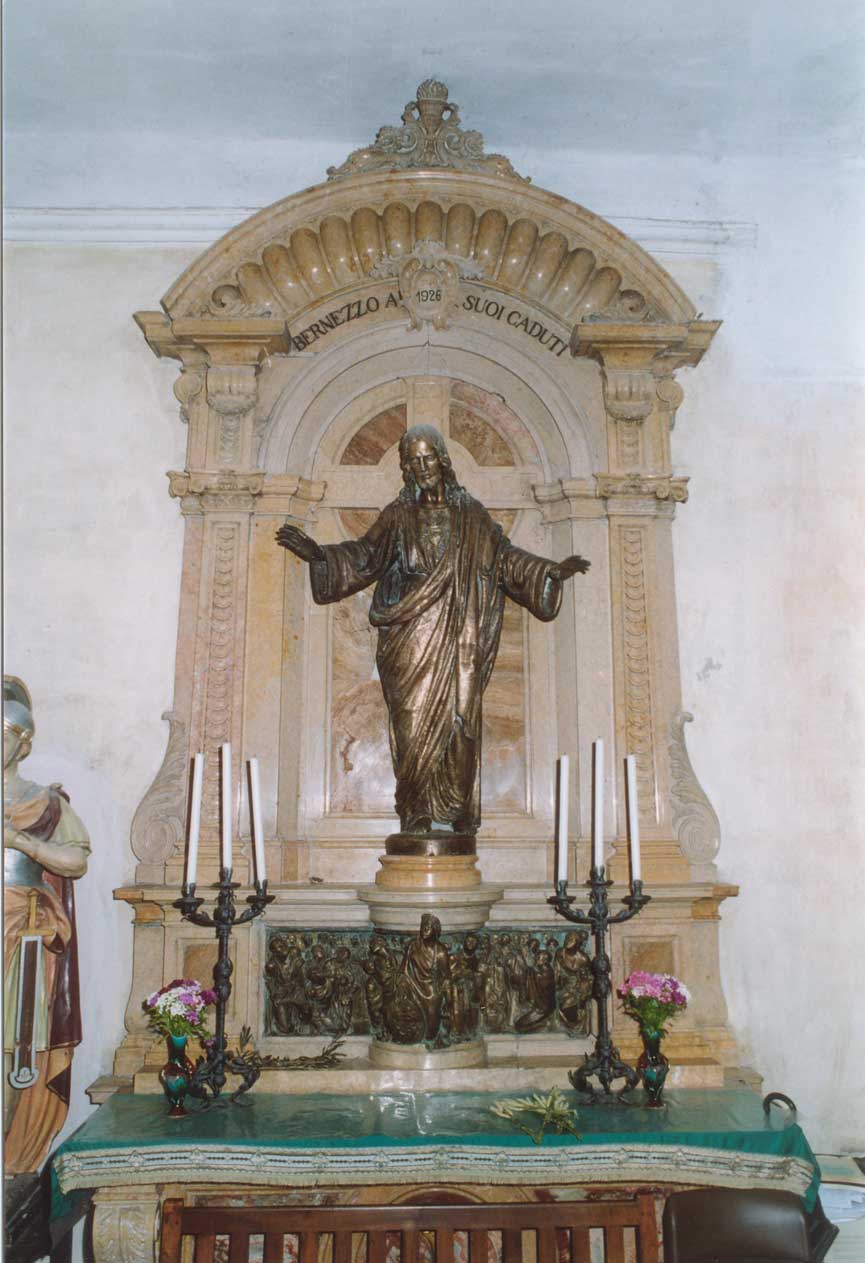 Entrando nella Chiesa della Madonna del Rosario non si può far a meno di notare, nella cappella di sinistra dove ha sede il coro, un prezioso monumento ai Caduti di cui dubito che i Bernezzesi più giovani conoscano la storia (chi scrive confessa di averla scoperta da poco).