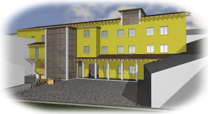 Realizzazione dell’ampliamento, lato cortile, con creazione del vano scala, ascensore con relativi porticati e corridoi di collegamento;
