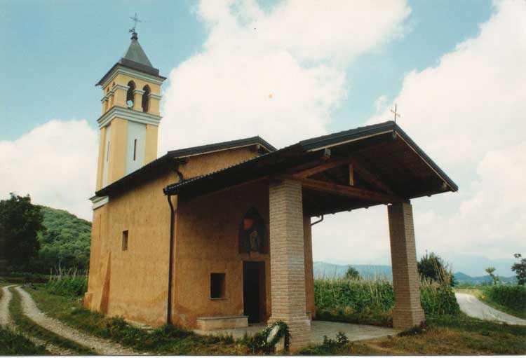 In precedenza era intitolata a S. Bernardo da Mentone. Sebbene si tratti di un piccolo edificio che "spunta" appena tra i campi, la Cappella ha una sua storia (un po' sfortunata a causa dei ladri e vandali) che ha inizio nel Seicento. In quel periodo sorse, per iniziativa privata, un semplice oratorio (piccolo edificio dedicato alla preghiera) che fu nel tempo ampliato con il porticato e il campanile, sorto nel 1880 (lo stesso anno in cui fu eretta la Cappella dei "Pigu", ora andata persa). Esso era stato progettato dal geometra Luigi Arnaud e fu realizzato con la spesa di 403 lire